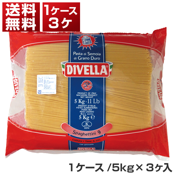 No.9 スパゲッティーニ (1.55mm) 1ケース イタリア産 5kg×3個 ディヴェッラ[同梱不可商品]