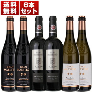 プーリアの2大品種プリミティーヴォとネグロアマーロで『ガンベロロッソ』最高賞を獲得するプーリアの家族経営「パオロレオ」赤白6本セット (750ml×6)