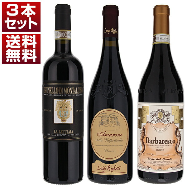 イタリアの銘酒「アマローネ」「ブルネッロ」「バルバレスコ」を味わう贅沢な3本セット (750ml×3) ブルネロ