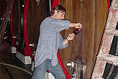 トリンケーロを代表するワインのひとつ「ヴィーニャデルノーチェ」は1929年に植えられた樹齢80年を超えるバルベーラのある、同じ名前の畑のブドウから造るワイン。樹齢の高い樹から厳格な収量制限をし、長いマセレーション期間、一切の温度管理をせず、スロヴェニア産の樫の大樽で2年以上の熟成をさせます。酸化防止剤も醸造時には一切添加せず、ボトリング時に少量使用するのみ。突出して熟成にこだわる造り手で、「ブドウ由来の香りには興味がない。ワインの香りを大事にしたい。つまりそれは熟成の香りなんだ。」という熱い想いをワインに込めた、素晴らしい造り手です。