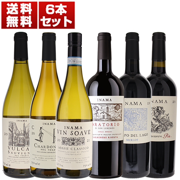 ソアーヴェエリアの概念を変えた「イナマ」!大人気ヴィンソアーヴェとこだわりの白&赤の銘醸地コッリベリチのメルローとカルメネールの6本セット (750ml×6) ソアヴェ