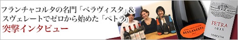 1976年設立のベッラヴィスタは、ロンバルディアの地で生産される発泡性ワイン=フランチャコルタ最上の生産者であり、フランチャコルタを代表するワイナリーです。エノロゴのマッティア ヴェッツォーラ氏はガンベロロッソ2008年版で年間最優秀醸造家に選ばれた、イタリアを代表する名エノロゴで、イタリアトップクラスのレストランや世界のワイン愛好家から人気を集める高品質のフランチャコルタです。またその完成度の高さを認められ、イタリアオペラ最高峰のミラノ スカラ座のオフィシャルサプライヤーにもなっています。